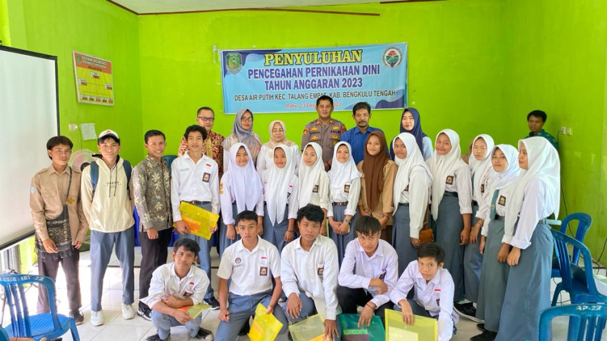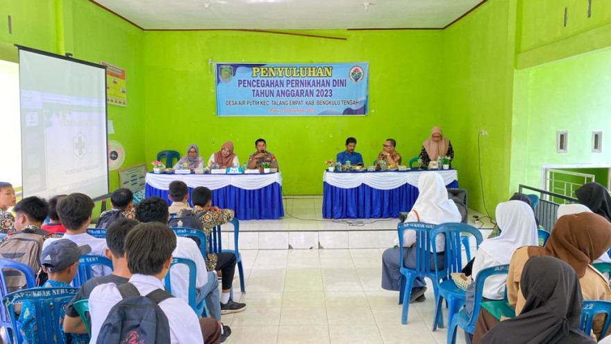 Kegiatan Penyuluhan pencegahan pernikahan usia dini pada hari ini di hadiri oleh bapak Kepala Desa beserta Perangkat, Camat Talang Empat, Pendamping Desa, adapun Pengisi Materi Dari UPT Puskesmas Taba Lagan, PKB Talang Empat, Kapolsek Talang Empat dan KUA Talang Empat.