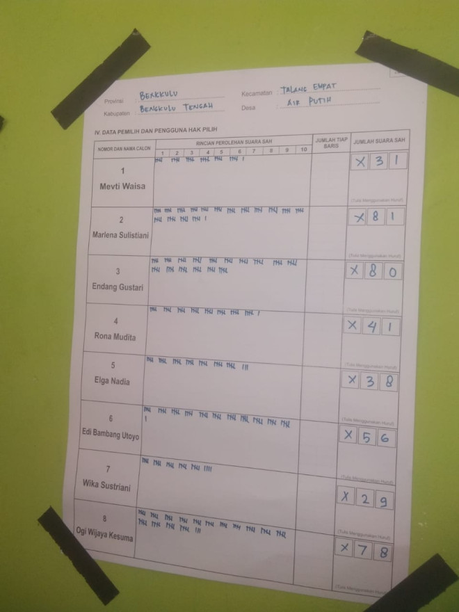 Nomor Urut 7 Wika Sustriani : 29 Suara