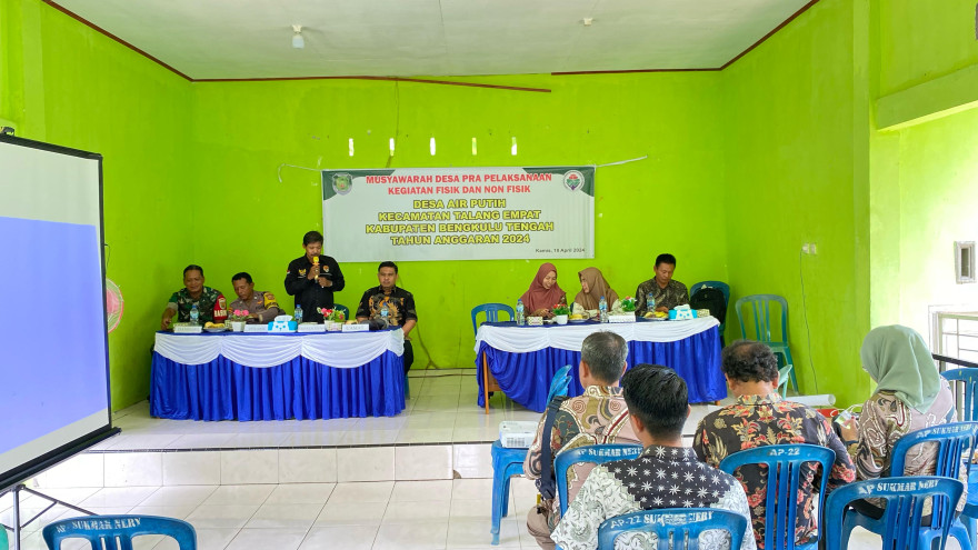 Pemerintah Desa Air Putih Kecamatan Talang Empat, mulai merealisasikan kegiatan pembangunan fisik yang bersumber dari Dana Desa (DD) Tahun Anggaran (TA) 2024.